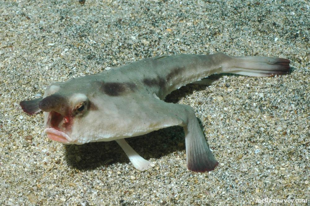 Red-Lipped Batfish memiliki ciri fisik yang sangat mencolok sehingga mudah dikenali bahkan oleh orang awam sekalipun. Bibir merah terang yang dimilikinya terlihat kontras dengan warna tubuhnya yang pucat dan sedikit kusam. Selain itu, bentuk tubuhnya pipih dan terlihat kurang aerodinamis untuk berenang cepat. Oleh karena itu, ikan ini tidak dirancang untuk bergerak aktif di kolom air seperti ikan lainnya. Sebaliknya, siripnya berkembang menyerupai kaki kecil yang digunakan untuk berjalan. Hal ini membuatnya tampak seperti makhluk darat yang beradaptasi di lingkungan laut. Menariknya, kombinasi bentuk tubuh dan warna ini bukan kebetulan, melainkan hasil evolusi panjang. Dengan demikian, Red-Lipped Batfish menjadi salah satu contoh unik bagaimana alam membentuk spesies dengan karakter yang tidak biasa.